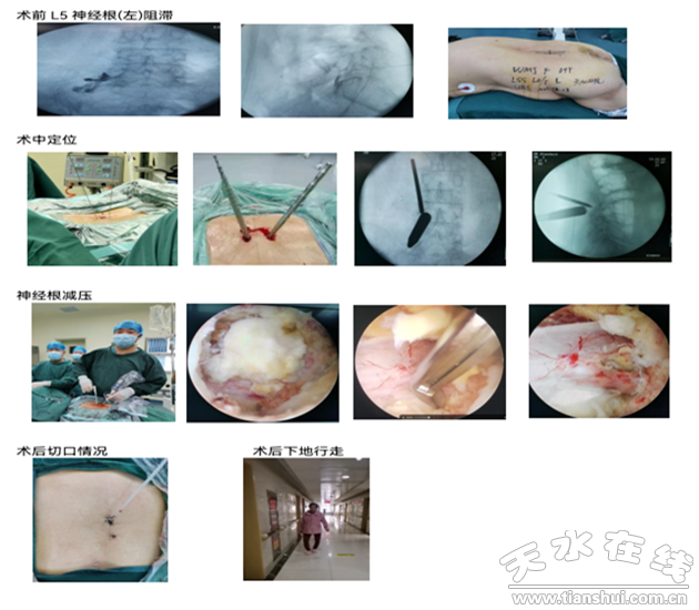 患者住院后科室副主任韋瑋通過詢問病史,仔細(xì)體格檢查,結(jié)合影像學(xué)檢查,和患者及家屬充分交流溝通,經(jīng)甘肅省中醫(yī)院脊柱微創(chuàng)骨科王想福主任醫(yī)師會診后,確定該患者適合在全麻下行UBE手術(shù)。因患者影像學(xué)表現(xiàn)雙節(jié)段狹窄,但患者臨床表現(xiàn)是L5神經(jīng)根受壓體征,術(shù)前先進(jìn)行左側(cè)L5神經(jīng)根阻滯,患者左下肢疼痛即刻緩解約80%,明確責(zé)任間隙后,隨后在UBE下行L4/5椎管減壓術(shù),歷經(jīng)1小時手術(shù)順利完成,麻醉清醒后患者左下肢疼痛消失,活動良好。術(shù)后第二日即佩戴腰圍下地活動,無疼痛不適。