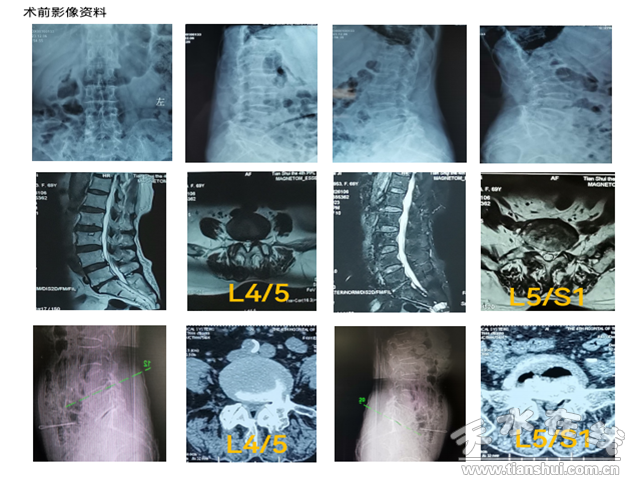 患者70歲,女性,主訴腰痛伴左下肢疼痛麻木1年,加重2月余。患者行走200米后出現(xiàn)腰痛及左下肢疼痛麻木,必須下蹲休息數(shù)分鐘后才能繼續(xù)行走,近2月來進(jìn)行性加重,近一周疼痛加重?zé)o法下地行走。X線、CT及MRI 顯示:腰4/5、L5/S1節(jié)段椎管狹窄,神經(jīng)根和硬膜囊受壓,在我市多家醫(yī)院保守治療無效,嚴(yán)重影響患者生活質(zhì)量。