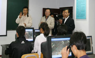 調(diào)研組在CNC控制室觀看學(xué)生上機(jī)演示