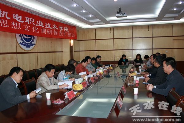 9月29日下午,全省宣傳思想文化調(diào)研工作督查組一行六人在省委宣傳部政策法規(guī)研究室副主任李小舟帶領(lǐng)下,由天水市文明辦主任李德榮、天水市委宣傳部辦公室主任胡江陪同,蒞臨甘肅機(jī)電學(xué)院調(diào)研。