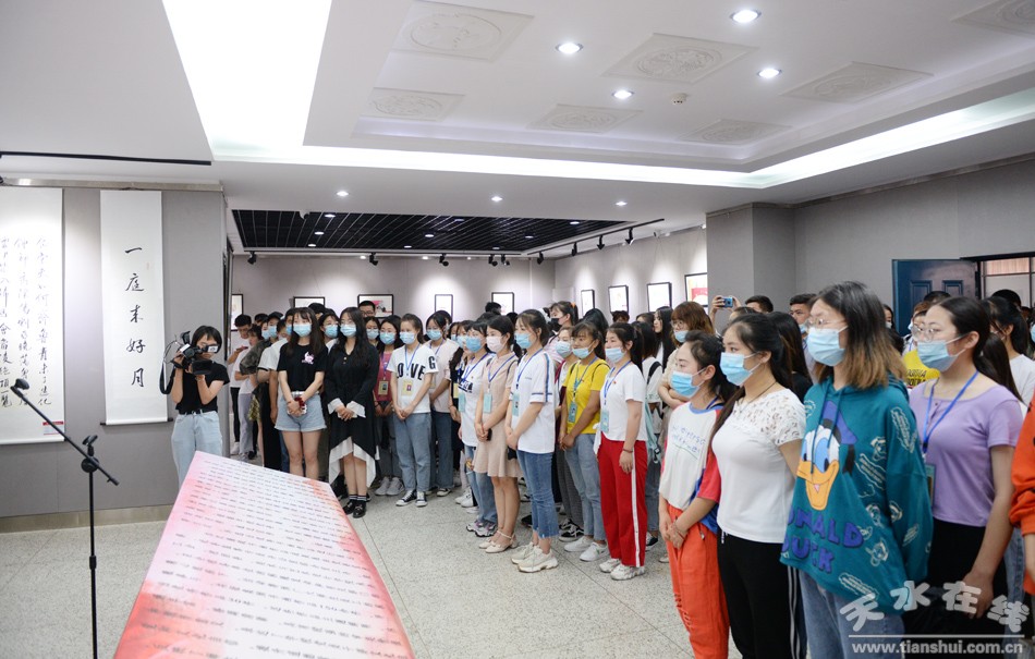 7月1日下午,天水師范學院在校藝術館舉辦慶祝建黨99周年暨“黨風廉政建設活動月”師生美術作品展,為黨的99歲生日獻禮;顒又荚谕ㄟ^一周的時間,以書畫作品的形式,開展反腐倡廉教育,著力培育廉潔價值理念,不斷營造清廉、文明、和諧的校園文化。