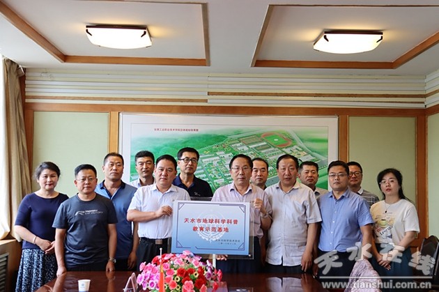7月20日,天水市地球科學(xué)科普教育示范基地授牌儀式在甘肅工業(yè)職業(yè)技術(shù)學(xué)院行政樓二樓會(huì)議室舉行。天水市科學(xué)技術(shù)協(xié)會(huì)主席李鳳奇、副主席劉暾偉、袁正榮等領(lǐng)導(dǎo)和學(xué)校黨委書(shū)記楊聲、副校長(zhǎng)李玉生出席,黨政辦、國(guó)資后勤處、科技處、地質(zhì)博物館、雙創(chuàng)學(xué)院等部門(mén)負(fù)責(zé)人參加授牌儀式。