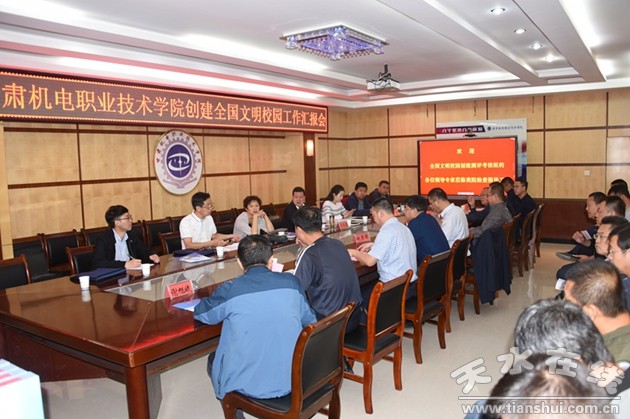 按照中央文明辦《關于評選第六屆全國文明城市、文明村鎮(zhèn)、文明單位和第二屆全國文明家庭、文明校園及新一屆未成年人思想道德建設工作先進的通知》精神,省文明辦和省教育廳決定,對推薦申報第二屆全國文明校園的學校和第一屆全國文明校園進行測評考核。8月30日,省文明辦三處處長常永德一行3人深入學院,就學院創(chuàng)建全國文明校園情況進行測評考核。天水市文明辦主任舒健、副主任劉玉璞,學院領導堅葆林、趙彥軍、李自勇、張德龍、毛文輝及有關部門負責人一同參加。