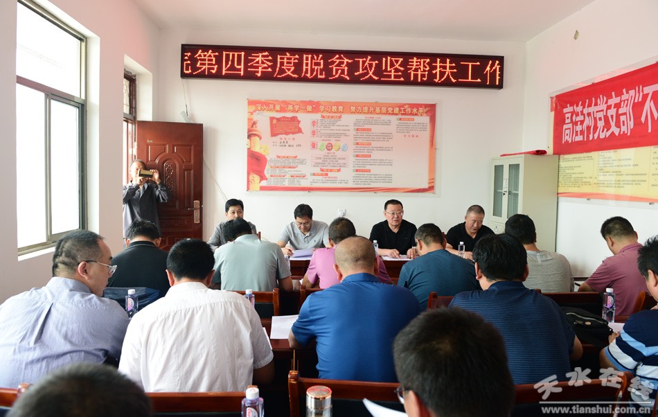 會(huì)上,王旭林傳達(dá)了8月19日省直及中央在甘單位幫扶秦安縣脫貧攻堅(jiān)工作協(xié)調(diào)推進(jìn)會(huì)議上的講話精神并對(duì)相關(guān)工作提出要求。駐村幫扶工作隊(duì)臨時(shí)黨支部負(fù)責(zé)人匯報(bào)了支部工作開(kāi)展情況,四位駐村第一書(shū)記分別就第三季度各村工作完成情況和第四季度工作計(jì)劃,以及國(guó)家脫貧攻堅(jiān)“普查”情況作了匯報(bào)。四個(gè)結(jié)對(duì)共建支部負(fù)責(zé)人就幫扶共建前期工作和后半年的工作計(jì)劃做了匯報(bào)。