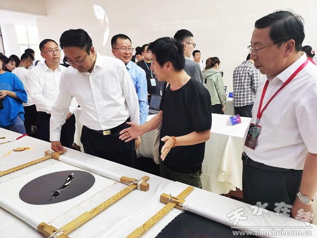 閉幕式結(jié)束后,甘肅省副省長(zhǎng)張世珍、省教育廳副廳長(zhǎng)張國(guó)珍、高教處處長(zhǎng)張發(fā)旺同志參觀了甘肅工業(yè)職業(yè)技術(shù)學(xué)院民間藝術(shù)大師劉云帆的隴繡珍藏品。張世珍指出,甘肅工業(yè)職業(yè)技術(shù)學(xué)院在非遺傳承人的培養(yǎng)、非遺文化創(chuàng)意產(chǎn)品研發(fā)等方面成績(jī)突出,為我省推動(dòng)非物質(zhì)文化遺產(chǎn)的保護(hù)、傳承、創(chuàng)新和發(fā)展提供了技術(shù)技能人才支撐。希望甘肅工業(yè)職業(yè)技術(shù)學(xué)院繼續(xù)加大力度培養(yǎng)具有新時(shí)代工匠精神和創(chuàng)新創(chuàng)業(yè)能力的非遺傳承人,一定要將我們甘肅省的非遺文化傳承下去,使之走向全國(guó)乃至世界。