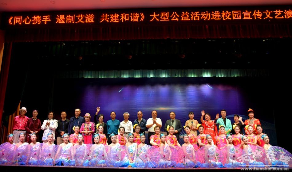 9月17日,由天水市秦州區(qū)疾控中心主辦,天水天驕藝術(shù)團(tuán)、天水天磊文化傳媒公司承辦并由天水市職業(yè)技術(shù)學(xué)校協(xié)辦的“同心攜手 遏制艾滋 共建和諧'大型公益活動(dòng)進(jìn)校園文藝演出在天水職業(yè)技術(shù)學(xué)校本部舉行。