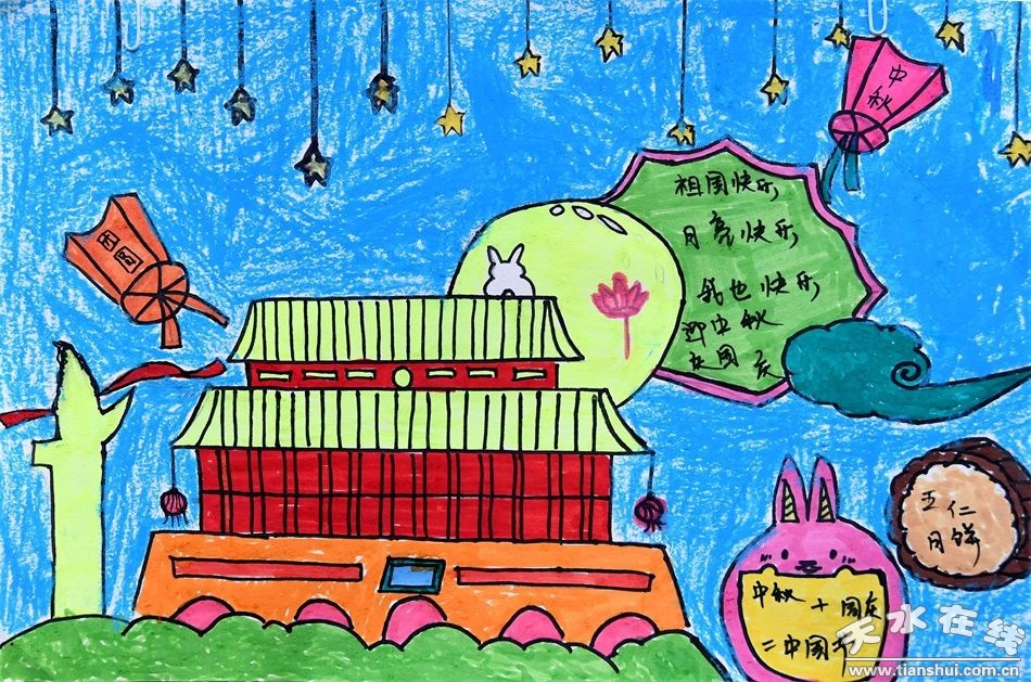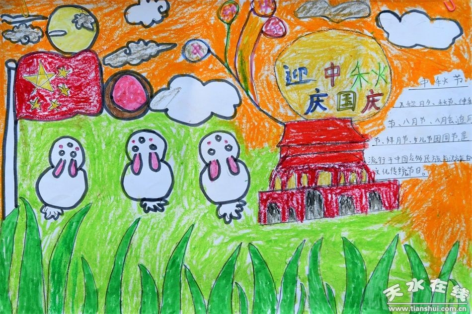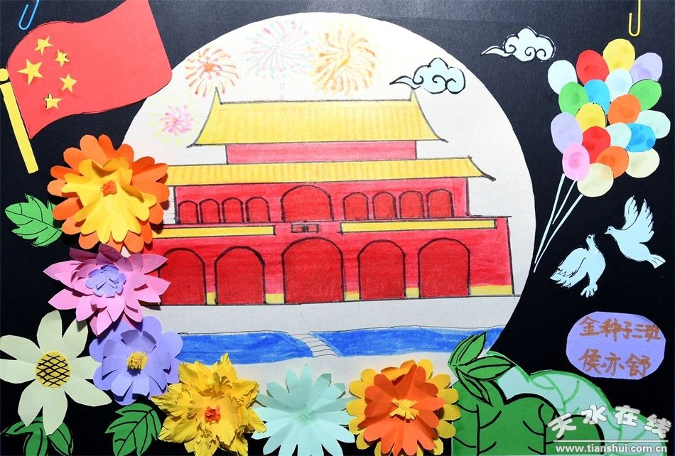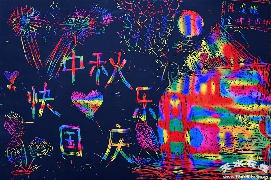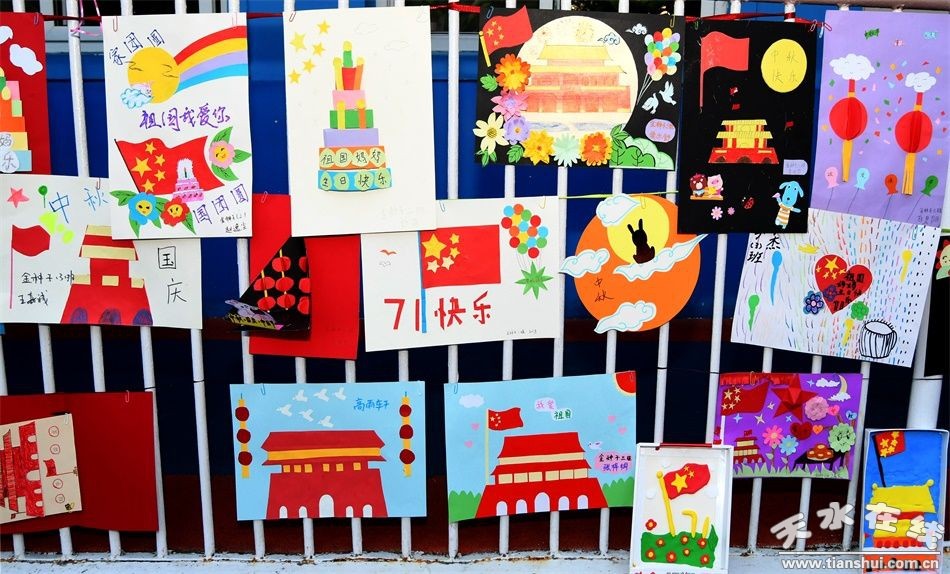 “國旗國旗真美麗……”在老師、家長的齊心協(xié)作下,孩子們用金色的畫筆把偉大的祖國、美麗的北京、神圣的天安門畫的惟妙惟肖。他們還用自己特殊方式做蛋糕,給國旗、地圖、月亮涂色來表達(dá)對祖國媽媽的愛,讓小朋友們對國慶、中秋節(jié)有了初步的認(rèn)知。孩子們還將和爸爸媽媽一起親手制作的鮮艷的國旗、明亮的圓月、新穎的手抄報,并把一面面做好的主題明快的畫作張貼在主題展覽展示墻上,表達(dá)孩子們歡度國慶、中秋佳節(jié)的喜悅之情。