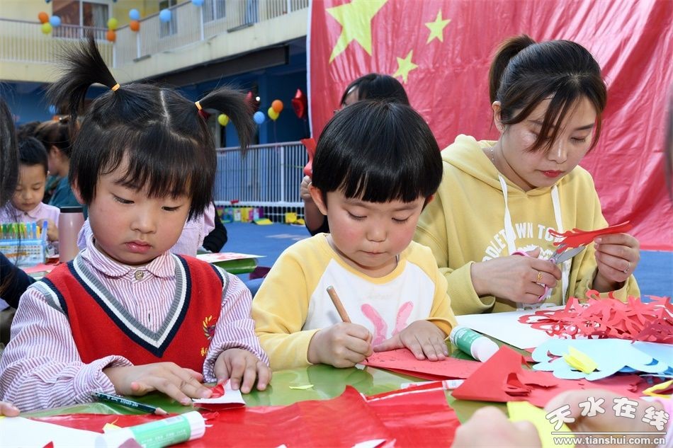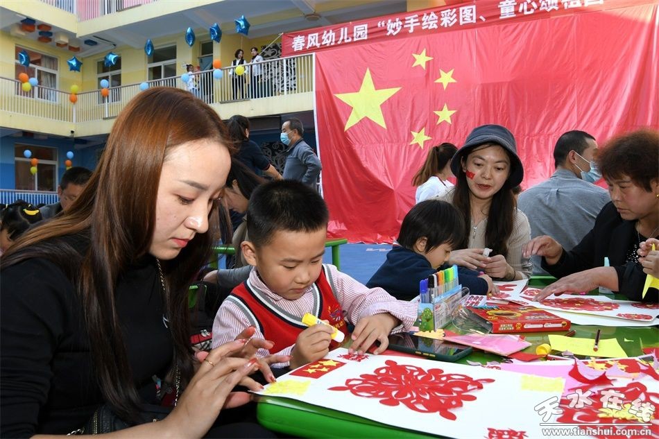 金秋送爽,萬里河山披錦繡。丹桂飄香,一輪明月寄情思。國慶前夕,伴隨著一首優(yōu)美的歌曲“今天是你的生日,我的祖國……”,拉開了秦州區(qū)春風(fēng)幼兒園“妙手繪彩圖 童心頌祖國”主題親子活動的序幕。
