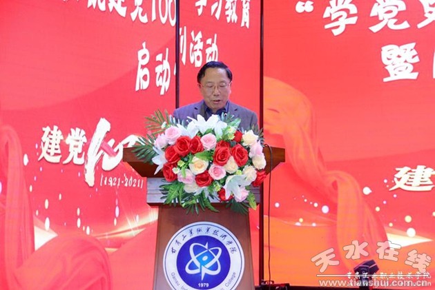 為了慶祝建黨100周年,學(xué)習(xí)貫徹習(xí)近平總書(shū)記在黨史學(xué)習(xí)教育動(dòng)員大會(huì)上的重要講話(huà),3月26日,甘肅工業(yè)職業(yè)技術(shù)學(xué)院在大學(xué)生活動(dòng)中心舉行了“學(xué)黨史、強(qiáng)信念、跟黨走”學(xué)習(xí)教育暨慶祝建黨百年系列活動(dòng)啟動(dòng)儀式。校黨委書(shū)記楊聲、黨委副書(shū)記郭建忠出席,圖書(shū)館、團(tuán)委等部門(mén)負(fù)責(zé)人及師生代表參加。