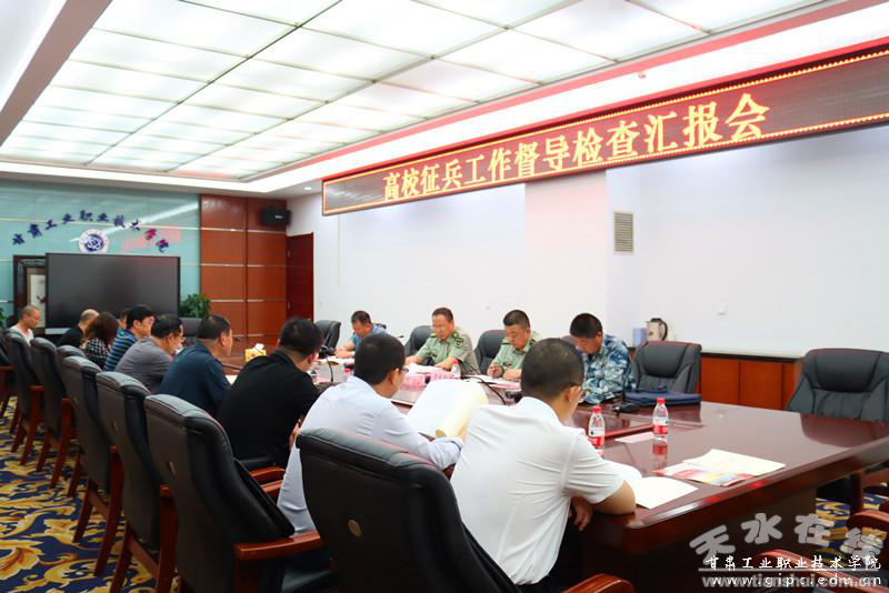 2021年7月9日上午,天水市委常委、天水軍分區(qū)司令員宋英武,動員處處長候長勤,麥積區(qū)區(qū)委常委、區(qū)武裝部部長李根來,天水市教育局科員李玉倉一行對甘肅工業(yè)職業(yè)技術(shù)學(xué)院征兵工作進(jìn)行督導(dǎo)檢查。校黨委書記楊聲出席,武裝部和二級學(xué)院征兵工作負(fù)責(zé)人參加了督查匯報(bào),會議由黨委副書記郭建忠主持。