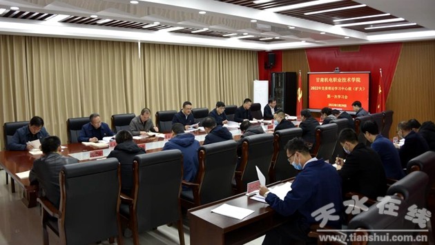 2月28日下午,甘肅機(jī)電職業(yè)技術(shù)學(xué)院黨委書(shū)記堅(jiān)葆林主持召開(kāi)學(xué)院2022年第一次黨委理論學(xué)習(xí)中心組(擴(kuò)大)集體學(xué)習(xí)會(huì)議。黨委班子成員趙彥軍、李自勇、張德龍、毛文輝、文云、楊俊出席會(huì)議,黨委各部門(mén)主要負(fù)責(zé)人、各基層黨組織書(shū)記及工會(huì)、團(tuán)委負(fù)責(zé)人參加。