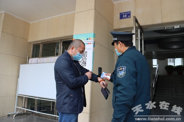 保衛(wèi)處組織安保人員,兢兢業(yè)業(yè)守好“防護(hù)門(mén)”,進(jìn)行場(chǎng)所碼掃碼指引、進(jìn)出樓門(mén)測(cè)溫和進(jìn)校物資的消殺等工作。