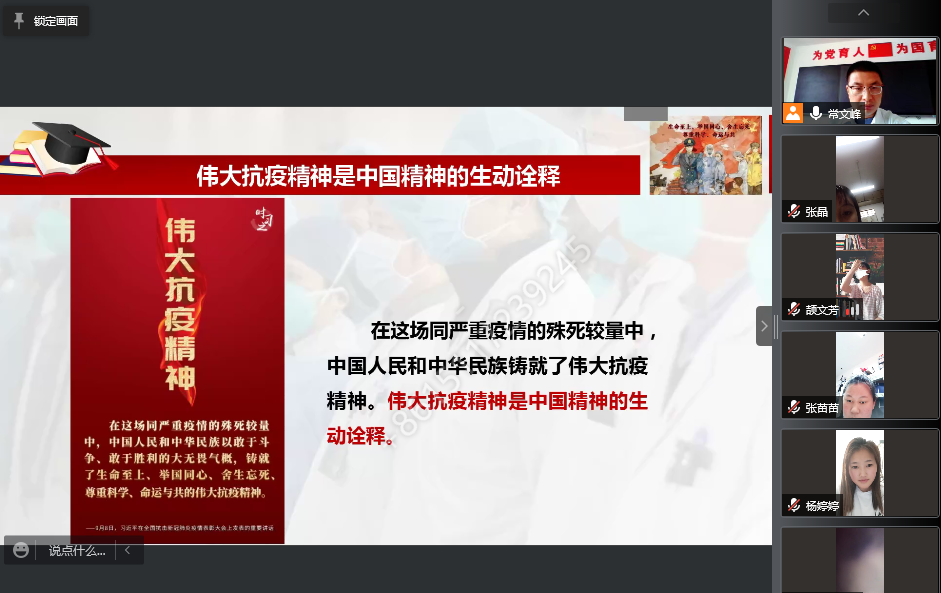 環(huán)境工程學(xué)院教師崔文斌以“疫情再次來襲”為主題,引用“黑夜給了我黑色的眼睛,我卻用它來尋找光明”,引導(dǎo)學(xué)生攜手共進(jìn),共克時(shí)艱,打贏疫情防控阻擊戰(zhàn)。趙雅靜、杜繼龍、刑軍梅等教師以“全民抗疫”、“萬眾一心”等抗疫案例和先進(jìn)事跡進(jìn)行健康生活號(hào)召、心理健康疏導(dǎo),提振了學(xué)生堅(jiān)持到底的信心,進(jìn)一步增強(qiáng)了青年大學(xué)生的志氣、骨氣和底氣。
