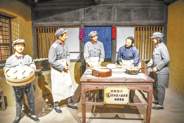 紀念館內(nèi)的雕塑再現(xiàn)了“軍民魚水情”的場景。