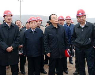 4月10日,蘭州市安寧區(qū)520#規(guī)劃路沿途植樹現(xiàn)場彩旗飄飄,9時30分,安寧區(qū)區(qū)長嚴志堅首先就520#道路綠化景觀工程、黃河銀灘段整治項目、蘭州市新城區(qū)重點地段城市設計等向黨政軍領導以及蘭州市機關干部群眾進行了介紹和匯報?吹教m州市新城區(qū)已經(jīng)描繪出宏偉藍圖,聽到目前各項工程的進展情況,省委書記陸浩和省長徐守盛頻頻點頭。