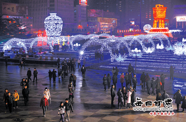 廣場花燈裝點(diǎn)蘭州節(jié)日夜晚(圖)