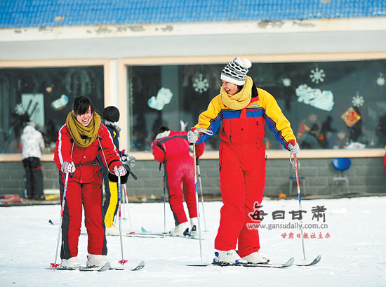 新年到來,蘭州市興隆山滑雪場吸引了不少游人前來滑雪,游客在滑雪中享受著新年的快樂。本報記者張鐵梁攝
