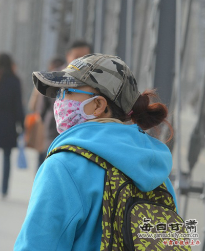 浮塵天氣,行人戴口罩上街。蘭州晨報(bào)首席記者 裴強(qiáng) 攝