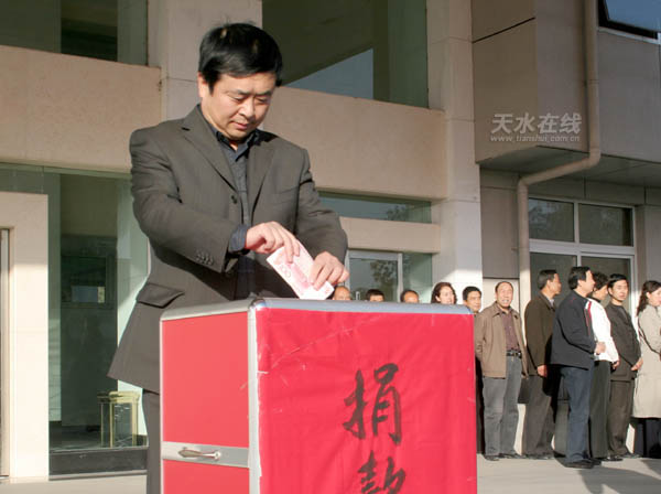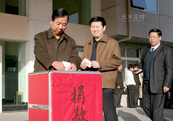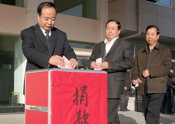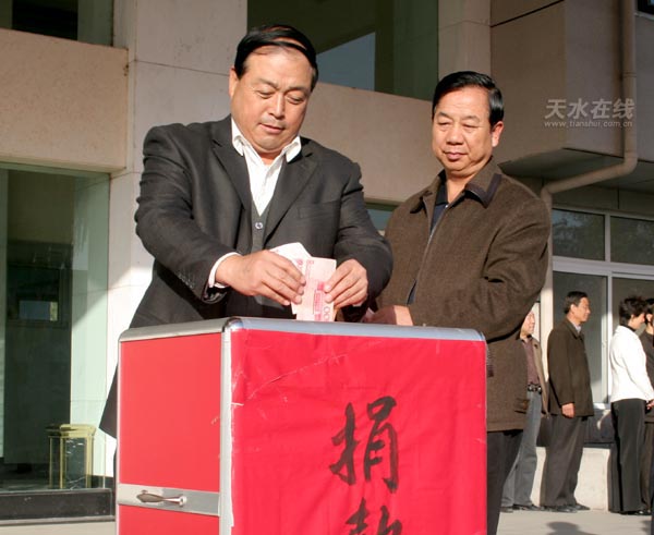 圖為麥積區(qū)委書記蔣曉強(qiáng)捐款