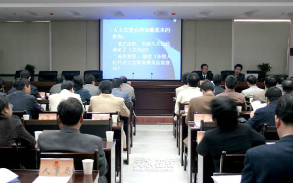 為了進一步增強領(lǐng)導(dǎo)干部的法律意識,提高依法行政能力,加快全區(qū)民主政治進程,4月11日上午,麥積區(qū)人大辦公室邀請區(qū)委黨校老師,就《監(jiān)督法》相關(guān)知識開展了一場專題知識講座。