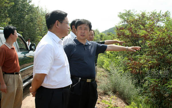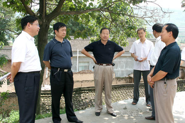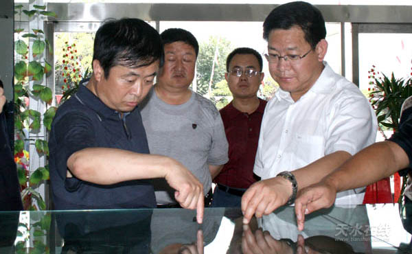麥積區(qū)委書記蔣曉強(qiáng)向市委督查組介紹南山萬畝花牛蘋果基地完善的路網(wǎng)建設(shè)情況