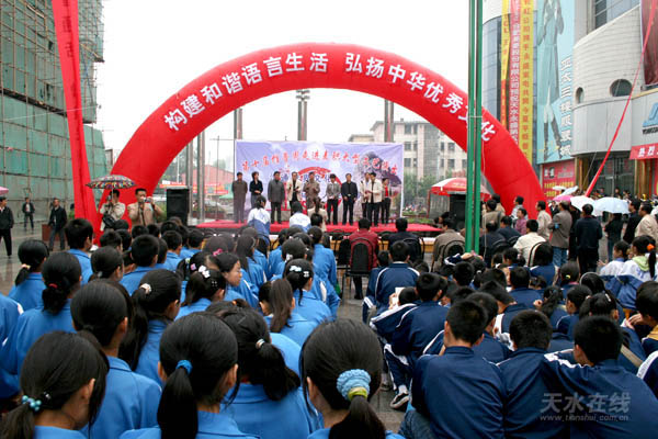 為響應(yīng)第十屆全國推廣普通話宣傳周活動,動員和鼓勵全區(qū)各單位和社會各界學(xué)習(xí)、應(yīng)用、推廣普通話,積極迎接今年10月份省上對我市進(jìn)行的二類城市語言文字工作評估驗收,9月16日上午,第十屆全國推廣普通話宣傳周“走進(jìn)麥積”暨萬人簽名活動在麥積區(qū)商埠路隆重舉行。