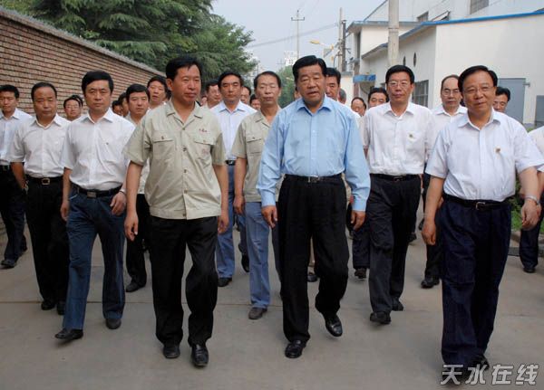 (2008年7月8日,中共中央政治局常委、全國政協(xié)主席賈慶林在省委書記、省人大常委會(huì)主任陸浩,省委副書記、省長徐守盛的陪同下在麥積區(qū)視察工作。)