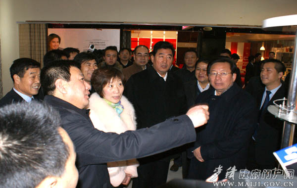 馮健身一行在市委書記、市人大常委會主任、市委學習實踐活動領導小組組長張景輝,市委副書記、市長、市委學習實踐活動領導小組副組長李文卿,市委副書記、市委學習實踐活動領導小組副組長張應華,市委常委、組織部長、市委學習實踐活動領導小組副組長楊繼軍,市委常委、秘書長、市委學習實踐活動領導小組副組長蔣曉強,市委組織部副部長、市委學習實踐活動領導小組辦公室副主任李吉祺及麥積區(qū)委書記、區(qū)委學習實踐活動領導小組組長蒲軍,區(qū)委副書記、區(qū)長、區(qū)委學習實踐活動領導小組副組長張克強,區(qū)委副書記、區(qū)委學習實踐活動領導小組副組長馬兆讓,區(qū)委常委、組織部長、區(qū)委學習實踐活動領導小組副組長張思佳等人的陪同下,先后深入聯(lián)系點橋南家居建材城、麥積鎮(zhèn)政府機關,就第三批學習實踐活動進展情況進行了調(diào)研檢查。