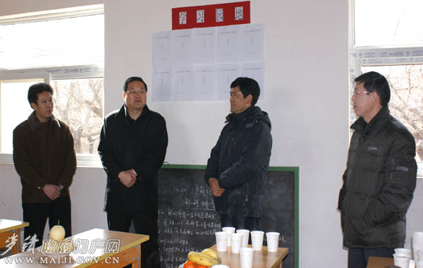 1月27日,天水市委常委、組織部長(zhǎng)楊繼軍,市委組織部副部長(zhǎng)、市人才辦主任趙文,市委組織部副部長(zhǎng)李吉祺,市委組織部部務(wù)委員裴貴軍,市委組織部各科室科長(zhǎng)和全市各縣區(qū)組織部長(zhǎng),在麥積區(qū)委副書記馬兆讓,區(qū)委常委、副區(qū)長(zhǎng)楊續(xù)祥,區(qū)委常委、組織部長(zhǎng)張思佳等人的陪同下,先后深入我區(qū)新陽鎮(zhèn)胡大村和周家灣村、花牛鎮(zhèn)南山蘋果協(xié)會(huì)、麥積鎮(zhèn)、區(qū)教育局,就“四議三雙”活動(dòng)、學(xué)習(xí)實(shí)踐活動(dòng)、新農(nóng)村建設(shè)、農(nóng)村黨員干部現(xiàn)代遠(yuǎn)程教育、鄉(xiāng)土人才培訓(xùn)、黨內(nèi)激勵(lì)幫扶試點(diǎn)、機(jī)關(guān)黨建等特色創(chuàng)新工作和基層組織建設(shè)工作進(jìn)行了現(xiàn)場(chǎng)觀摩檢查指導(dǎo)。