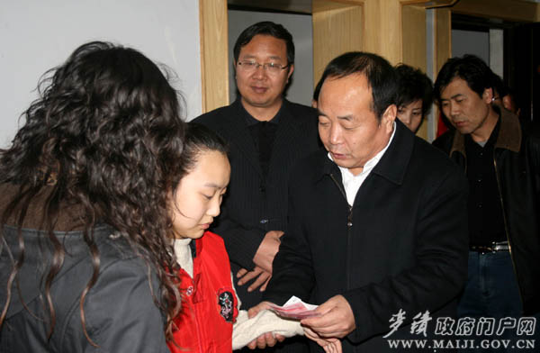在孤寡老人何玉琴家里,區(qū)領(lǐng)導張克強和賈應珍拉著老人的手,關(guān)心地詢問她的生活情況和當前還存在的困難,并就生活低保金的領(lǐng)取、暖氣的供應等問題,一再叮囑街道社區(qū)負責同志要經(jīng)常主動、及時地上門為老人服務,確保老人過一個祥和、溫暖的春節(jié)。何玉琴老人激動地拉著區(qū)領(lǐng)導的手,不停地說:“感謝黨,感謝政府……”。在殘疾人張薇家中,區(qū)領(lǐng)導把慰問金送給張薇的同時,也把區(qū)四大組織的新春問候送給了她,并叮囑家屬,要特別注意照顧好她的生活起居,多方面想辦法,為孩子積極尋求最佳醫(yī)治方案,爭取早日康復。