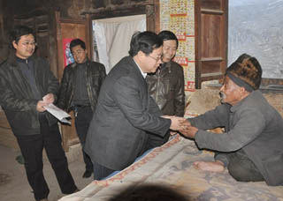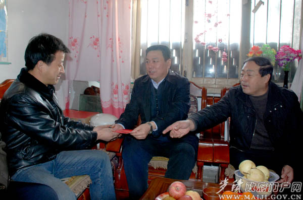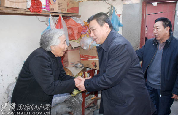 新春來臨之際,城市困難群眾的生活尤其牽動著麥積區(qū)四大組織領(lǐng)導(dǎo)的心。當(dāng)天下午,區(qū)領(lǐng)導(dǎo)蒲軍、胡福林、馬兆讓、李加峰一行還先后來到單親婦女謝香菊、孤寡老人宮玉蘭和特困職工韓曉全家中,送去慰問物資和資金。在單親婦女謝香菊家,區(qū)領(lǐng)導(dǎo)要求同行慰問的區(qū)婦聯(lián)和居委會負(fù)責(zé)人,要想方設(shè)法解決其生活中遇到的困難,免費為她提供一些技術(shù)培訓(xùn),幫助其早日脫貧。在特困職工韓曉全家中,蒲軍、胡福林關(guān)切地詢問他家里的收入來源、工作現(xiàn)狀,看到韓曉全一家家庭美滿,區(qū)領(lǐng)導(dǎo)十分欣慰,鼓勵他要自強自立,樂觀地面對生活中暫時遇到的困難,爭取盡快過上好日子。72歲的孤寡老人宮玉蘭,多年來在區(qū)領(lǐng)導(dǎo)和道北街道辦事處的關(guān)心下,生活有了很大改善,看到區(qū)上領(lǐng)導(dǎo)又來看望自己,老人激動地?zé)釡I盈眶。蒲軍、胡福林等領(lǐng)導(dǎo)詳細(xì)了解了老人的飲食起居,并一再叮囑同行的區(qū)直有關(guān)部門和辦事處負(fù)責(zé)人要多關(guān)心老人的生活,確保老人生活不出問題。
