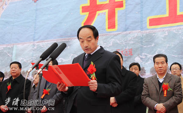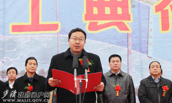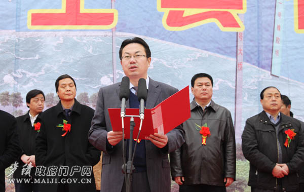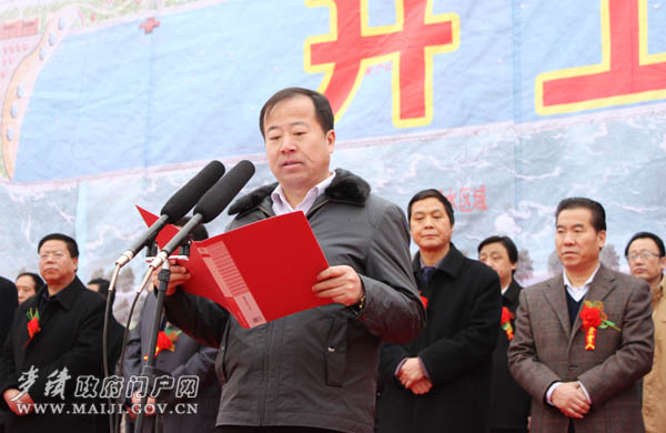市委常委、副市長(zhǎng)柴金祥宣布“麥積區(qū)渭河城區(qū)段防洪及環(huán)境治理一期工程開(kāi)工”。