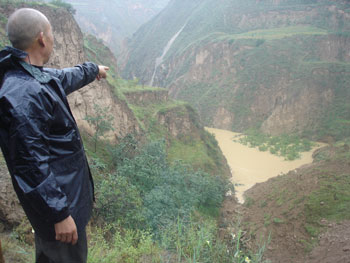 記者在現(xiàn)場(chǎng)看到,滑坡土方將約100米寬的河道掩埋,并把河床抬高了10余米,自上而下流經(jīng)此處的河水蓄成一個(gè)20多米長(zhǎng)、數(shù)十米寬、五六米深的水壩,水面上只能看到幾棵杏樹的樹梢。