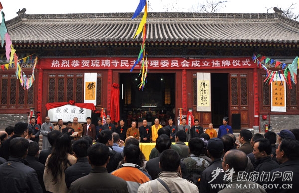 (市政協(xié)副主席張克強(qiáng)等市區(qū)領(lǐng)導(dǎo)為琉璃寺民主管理委員會(huì)成立揭牌)