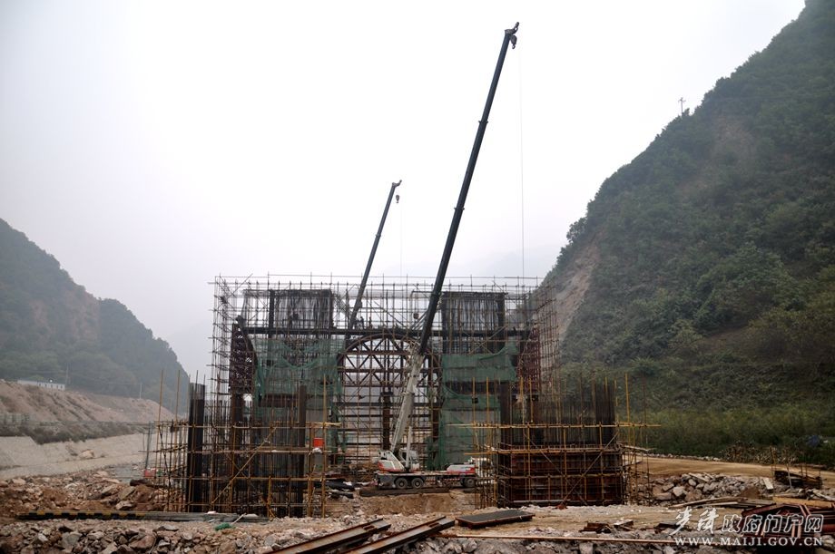 10月10日,時(shí)至深秋。街面上已經(jīng)有點(diǎn)寒意襲人,而位于東岔鎮(zhèn)境內(nèi)的寶蘭客專筆架山隧道交川溝特大橋建設(shè)現(xiàn)場(chǎng)卻是一派人頭攢動(dòng)、熱火朝天的大干景象。在施工工地現(xiàn)場(chǎng),中鐵十局負(fù)責(zé)人王文斌正帶領(lǐng)工人們爭(zhēng)分奪秒地加快鐵路項(xiàng)目建設(shè)。他告訴筆者:“筆架山隧道為寶蘭客專全線最大埋深的隧道,全長(zhǎng)14.7km,穿越交川溝與秦嶺溝之間的中高山,最大埋深715m;交川溝特大橋?yàn)楸緲?biāo)段最長(zhǎng)橋梁,橋長(zhǎng)1057.6m,最大橋高38m;東岔站就建在這里,是寶蘭客運(yùn)專線在天水境內(nèi)所設(shè)東岔、天水南、秦安3處中間站之一,設(shè)計(jì)停車時(shí)間2分鐘!