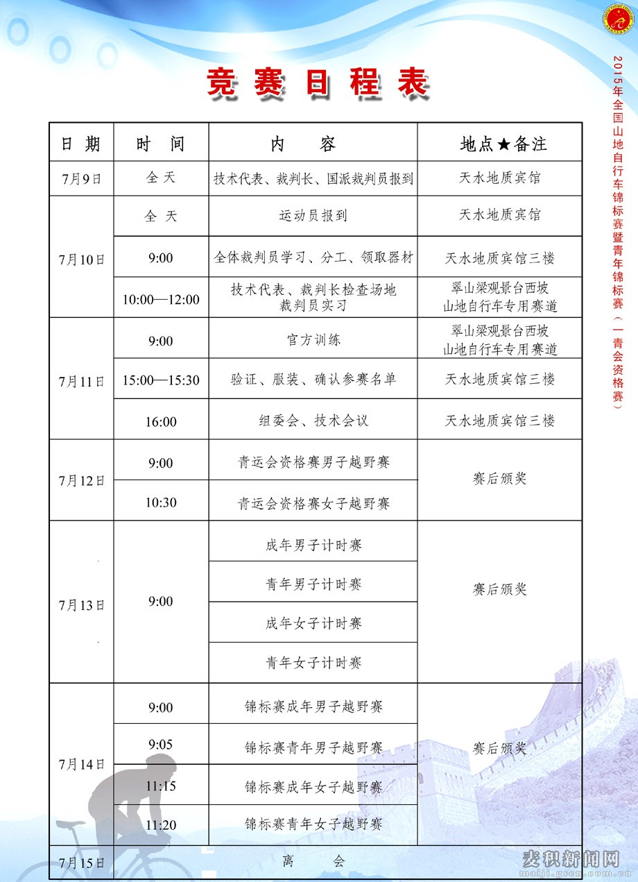 全國(guó)山地自行車錦標(biāo)賽暨青年錦標(biāo)賽競(jìng)賽日程