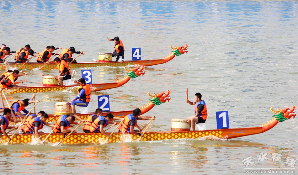 8月7日上午,2016年中國龍舟公開賽(甘肅·天水·麥積站)暨中國·天水·麥積第二屆“伏羲杯”龍舟大賽舉行開幕式,同時(shí)進(jìn)行5人、12人、22人龍舟200米、500米直道競(jìng)速?zèng)Q賽和22人龍舟5000米繞標(biāo)賽,并舉行頒獎(jiǎng)儀式。
