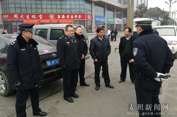 2月6日上午,麥積區(qū)副區(qū)長(zhǎng)杜根祥帶領(lǐng)區(qū)城管局、運(yùn)管分局、公安交警大隊(duì)、環(huán)衛(wèi)局、廣場(chǎng)管理處、天水火車(chē)站相關(guān)負(fù)責(zé)人督查城市環(huán)境秩序綜合整治工作。