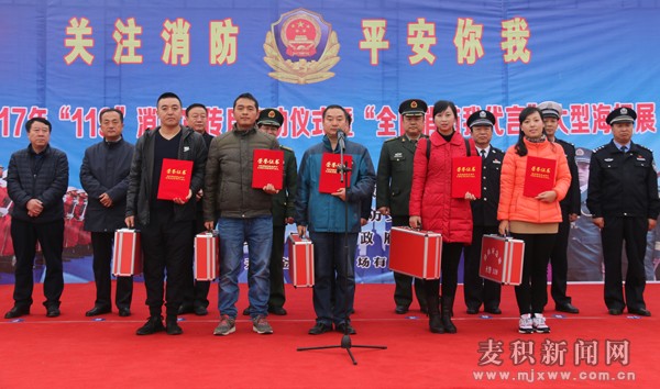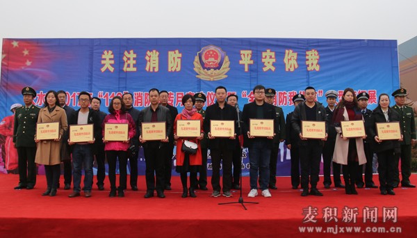 11月9日上午,天水市2017年“119”消防安全宣傳月暨“全民消防我代言”大型海報展啟動儀式在麥積區(qū)馬跑泉市政廣場舉行。