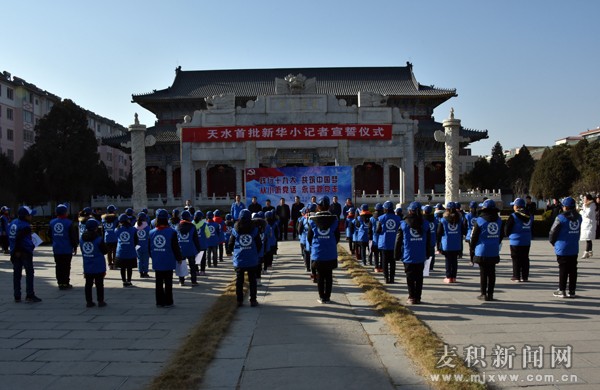 12月23日,天水首批新華小記者宣誓儀式在麥積區(qū)愛國主義教育基地龍園舉行,經(jīng)過先前層層選拔、面試脫穎而出的60多位天水首批新華小記者參加了此次的宣誓儀式。