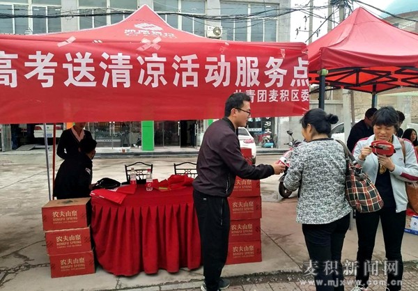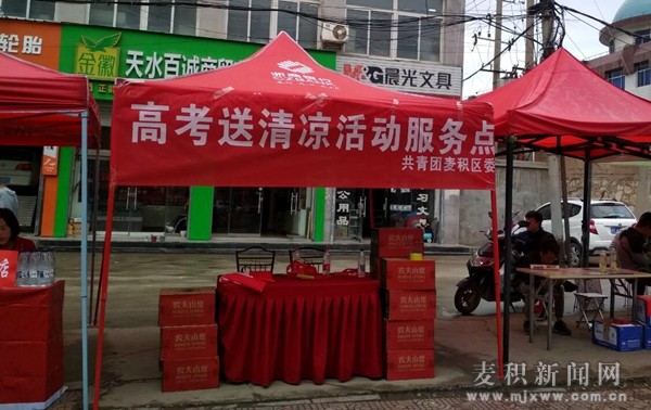 一年一度的高考是社會(huì)普遍關(guān)注的熱點(diǎn)大事,牽動(dòng)著億萬(wàn)學(xué)子和父母的心。6月7日至8日,由共青團(tuán)麥積區(qū)委組織發(fā)起的“高考送清涼”公益志愿服務(wù)活動(dòng)在天水市第二中學(xué)、第八中學(xué)、第九中學(xué)考點(diǎn)有序開(kāi)展。