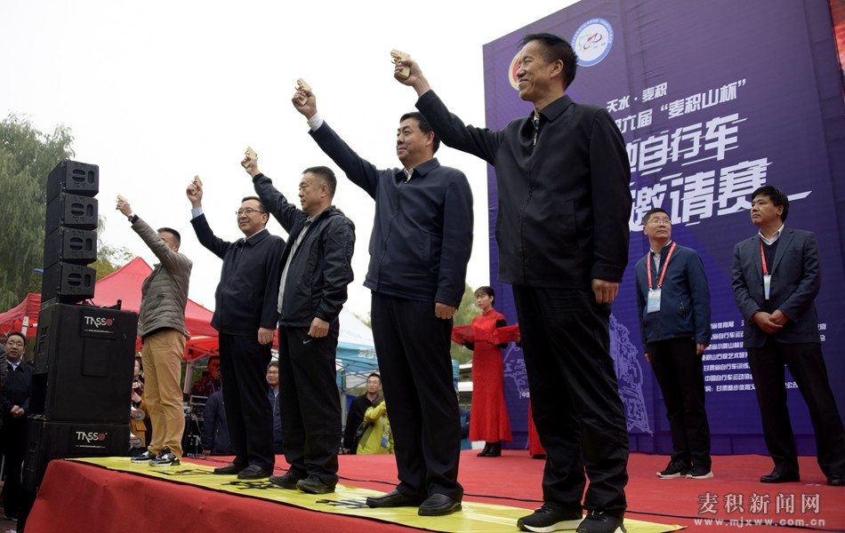 天水市人大常委會主任、市委秘書長蔣曉強(qiáng),市政府副市長逯克宗,市政協(xié)副主席蘇定武,市政協(xié)副主席、麥積區(qū)委書記張智明,甘肅省自行車訓(xùn)練管理中心黨委書記何立華共同為2018年中國·天水·麥積第六屆“麥積山杯”全國山地自行車邀請賽鳴槍開賽。