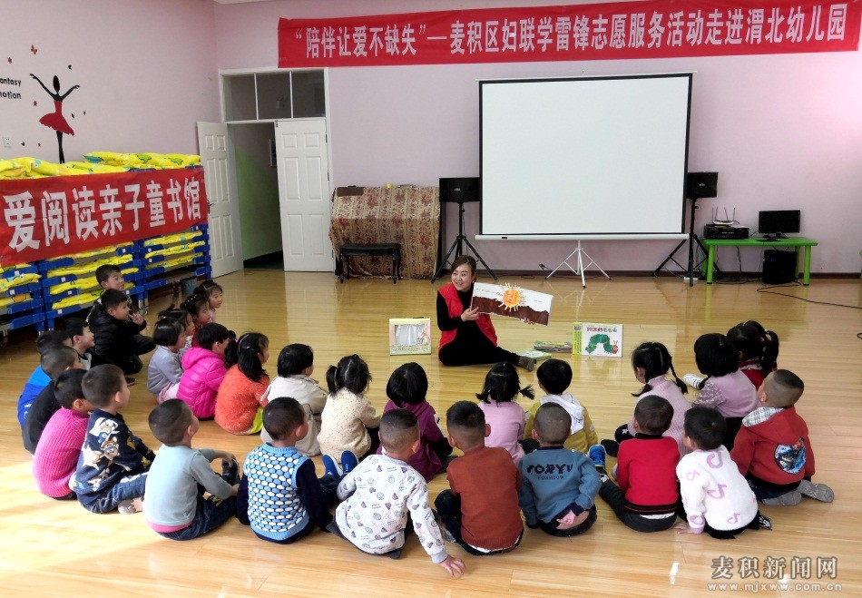 此次活動,麥積區(qū)婦聯(lián)特別邀請愛閱讀親子童書館工作人員,為渭北幼兒園的30多名農(nóng)民工子女組織開展了一場別開生面的“學(xué)雷鋒親子活動”。由區(qū)婦聯(lián)干部、幼兒園老師以及愛閱讀親子童書館工作人員組成的志愿者“家長”,為他們帶去了特色書展示、故事聆聽以及雙語智能創(chuàng)造力手工課。