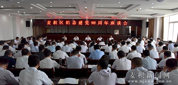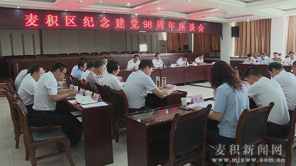 麥積區(qū)融媒體中心訊(記者 李欣 姚苗)6月29日,麥積區(qū)召開(kāi)紀(jì)念建黨98周年座談會(huì)。市政協(xié)副主席、區(qū)委書(shū)記張智明出席會(huì)議并講話(huà),區(qū)委副書(shū)記、區(qū)長(zhǎng)成少平主持會(huì)議并就近期重點(diǎn)工作進(jìn)行了安排。區(qū)人大常委會(huì)主任趙繼文,區(qū)政協(xié)主席高志強(qiáng),區(qū)委副書(shū)記霍定明出席會(huì)議。