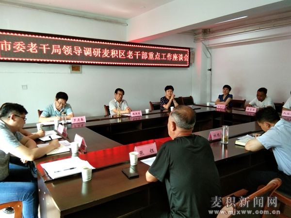 麥積區(qū)融媒體中心訊(記者 何換寶)7月26日,市委老干局調(diào)研麥積區(qū)老干部重點工作座談會召開。市委組織部副部長、老干部局局長魏勝奎,副局長董珺,麥積區(qū)委常委、組織部部長杜根祥,區(qū)關(guān)工委常務(wù)副主任張鈺參加座談會。