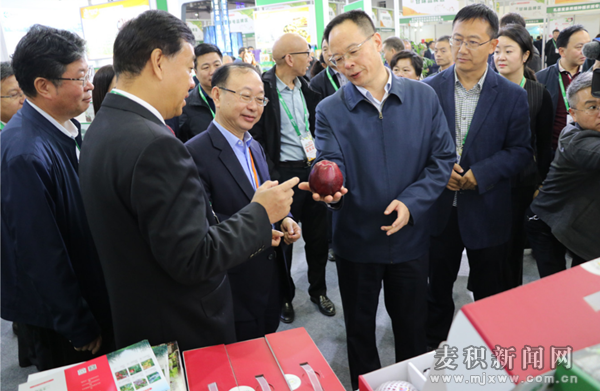 11月15日,由國家農(nóng)業(yè)農(nóng)村部、江西省政府主辦的第十七屆中國國際農(nóng)產(chǎn)品交易會在江西省南昌市隆重召開。本屆農(nóng)交會以“禮贊七十華誕,做強農(nóng)業(yè)品牌,助力鄉(xiāng)村振興”為主題,展期4天。展覽展示面積約13萬平方米,設立綜合成就展區(qū)、扶貧展區(qū)、特大型企業(yè)館等18個專業(yè)展區(qū),共有8000余家企業(yè)攜5萬余種展品參展,吸引世界各地2.3萬余家采購商。甘肅省委副書記孫偉,甘肅省委副秘書長王春江,甘肅省農(nóng)業(yè)農(nóng)村工作委員會主任、農(nóng)業(yè)農(nóng)村廳廳長李旺澤,副廳長周幫貴,江西省退役軍人事務廳廳長歐陽泉華一同巡視了天水展廳。天水市副市長逯克宗帶領市、區(qū)農(nóng)業(yè)農(nóng)村部門負責人及相關農(nóng)產(chǎn)品經(jīng)銷龍頭企業(yè)、農(nóng)民合作社負責人參加交易會。