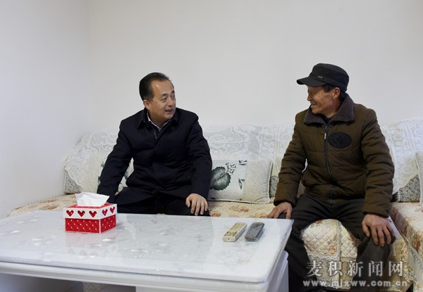 (在花牛鎮(zhèn)楊家河村與貧困戶王全生親切交談,了解政策落實情況)