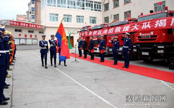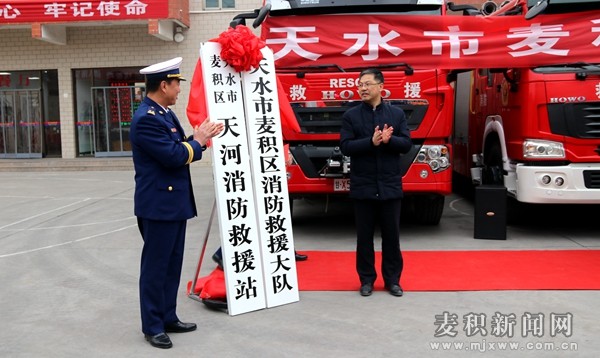 麥積區(qū)融媒體中心訊(通訊員 方 矩)12月31日,麥積區(qū)消防救援大隊(duì)舉行掛牌儀式,天水市消防救援支隊(duì)政委李延奇,麥積區(qū)委常委、政法委書記、麥積公安分局局長杜崢嶸出席掛牌儀式并共同為麥積區(qū)消防救援大隊(duì)揭牌。區(qū)應(yīng)急管理局負(fù)責(zé)人,麥積區(qū)消防救援大隊(duì)全體指戰(zhàn)員、文職人員、政府專職隊(duì)員約50余人參加儀式。