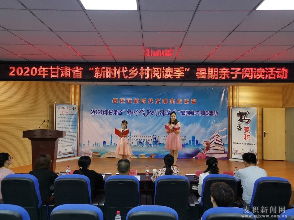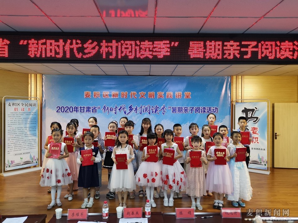 麥積區(qū)融媒體中心訊 (記者 劉秋鈺)8月14日,由甘肅省農(nóng)家書屋建設管理辦公室、中共天水市委宣傳部主辦,中共天水市麥積區(qū)委宣傳部、天水市麥積區(qū)文體廣電和旅游局承辦的麥積區(qū)新時代文明實踐講堂——2020年甘肅省“新時代鄉(xiāng)村閱讀季”暑期親子誦讀活動在麥積區(qū)圖書館舉行。甘肅省委宣傳部省農(nóng)家書屋建設管理辦公室主任劉曉文,市委宣傳部副部長楊瑞峰,副區(qū)長成紅梅出席活動并為獲獎家庭頒獎。