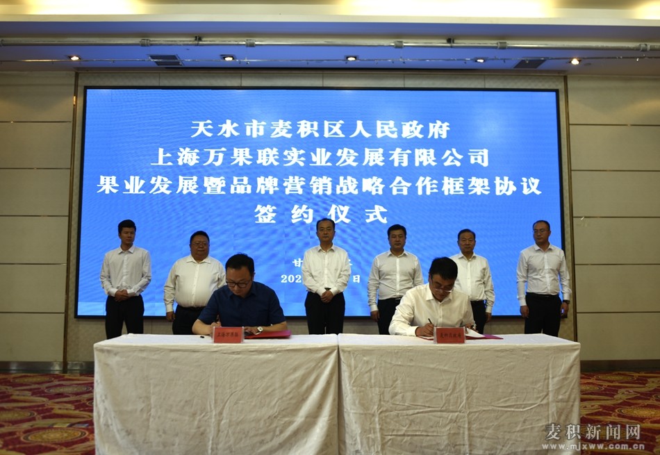 簽約儀式上,張樹增代表天水市麥積區(qū)人民政府與萬果會(huì)萬果聯(lián)創(chuàng)始人朱勇立簽訂了《戰(zhàn)略合作框架協(xié)議》,麥積區(qū)農(nóng)扶公司、天水雙原果業(yè)與上海萬果聯(lián)實(shí)業(yè)發(fā)展有限公司簽訂了《果業(yè)營(yíng)銷產(chǎn)業(yè)綜合體合作協(xié)議》。